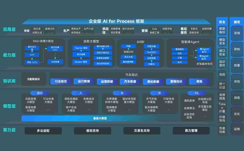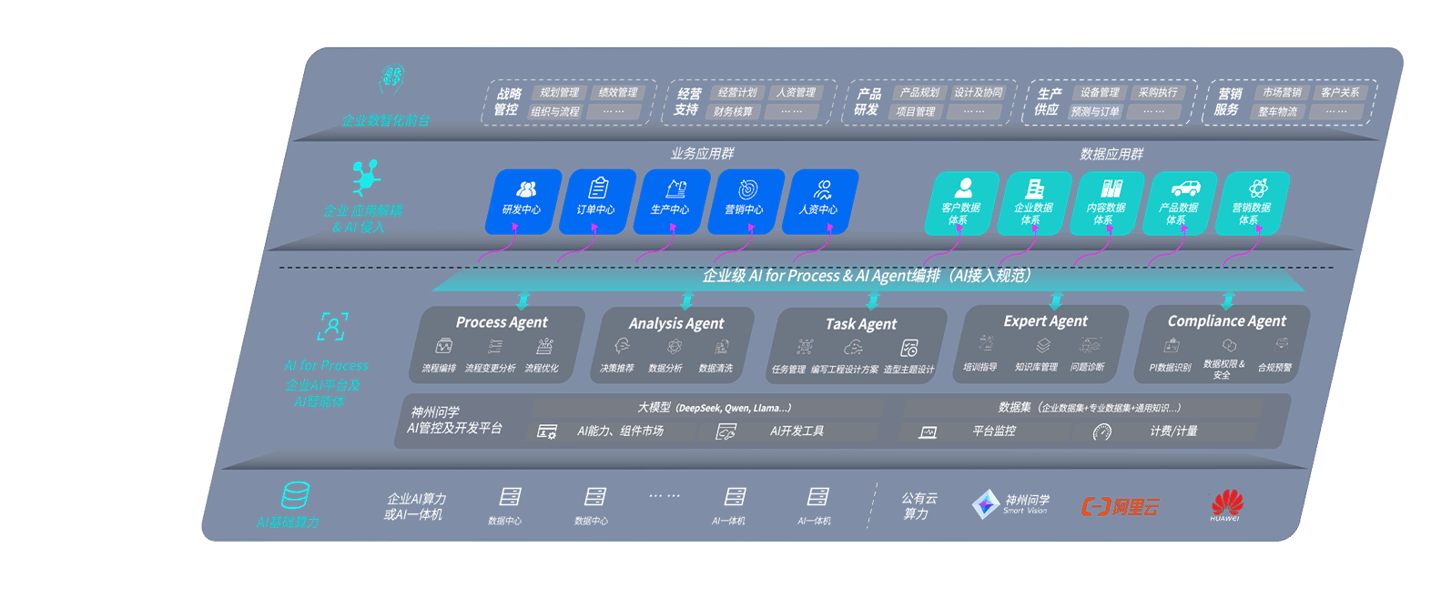 龙门国际问学智车解决方案是一套基于AI技术的汽车行业智能化系统,,覆盖从底层算力到顶层AI应用的全栈方案。。。方案由算力层、、模型层和应用层组成:算力层,,,,方案支持多种一体机配置,,具备云端灵活部署、、多云适配以及动态优化计算资源的能力;模型层,,,龙门国际问学平台版提供了企业级AI应用一站式构建与管理平台,,,,支持基于后训练强化技术的汽车企业专属模型的训练、、、、评测和运营;应用层,,,,龙门国际问学DeepSeek版提供包括超级员工、、、、智能招采、、、、智能营销、、智能客服、、、AI for BI等一系列解决方案,,可助力汽车行业实现数字化转型,,,让管理更智能、、响应更敏捷。。